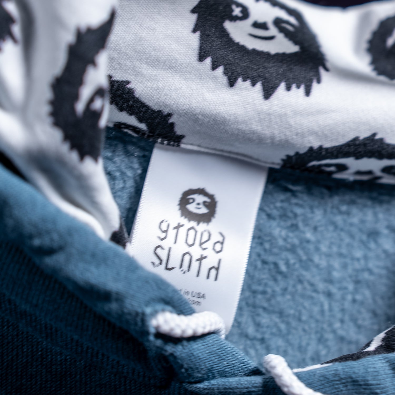 Let the world know you aren't afraid to stand up and wear the sloth with custom woven labels sewn to all clothing.
